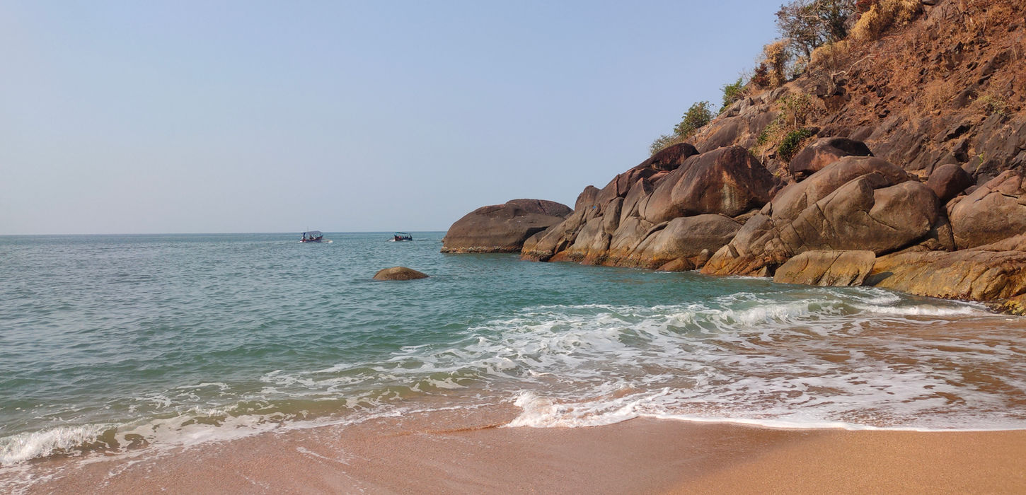 Butterfly Beach lives up to its enchanting name with a crescent-shaped shoreline nestled between rocky cliffs and lush forest4. The beach's unique golden sand creates a striking contrast against turquoise waters, while palm trees provide natural shade for relaxation. This secluded haven remains largely untouched by commercial development, offering visitors an authentic slice of pristine Goan coastline.
